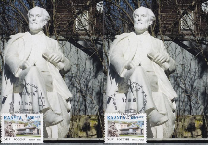 Местное переводное «космическое» гашение Калуги. Одним из элементов марки является памятник К.Э. Циолковскому у его дома-музея. Гашения 12 апреля 2025 года: «День космонавтики» и «Калуга — колыбель космонавтики». Предусмотрено место для марки и гашения. Тираж — по 2 экземпляра каждого.