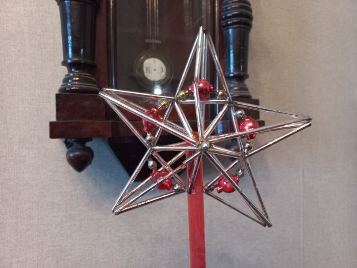 На новогодней елке, вместо Вифлеемской звезды, появилась пятиконечная звезда, как символ власти Кремля. Танки, подводные лодки, автомобили, дирижабли и т.д., как достижения промышленности Советской власти. Символы успехов в сельском хозяйстве, освоения Крайнего Севера, и в строительстве Красной армии, стали обязательным атрибутом елочных украшений.