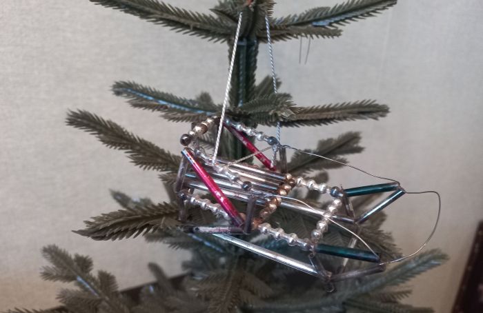Отдельный сюжет связан с монтажной игрушкой. Производство стеклянных бусин технологически прост. Нанизывая их на проволоку, можно создать различные как плоские, так и объемные объекты (стульчики, лестницы, фонарики, парусники, аэростаты, самолеты), а в последствии и более сложные фигуры. Эта технология сохранилась до 60-х годов.