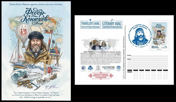 Почтовая карточка Проекта «POSTVENTURE & Почтовое приключение», посвящённая Фёдору Конюхову, 2026 г.