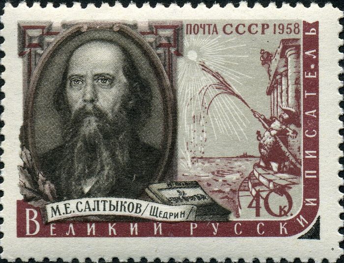 В 1976 году в связи со 150-летием со дня рождения М.Е. Салтыкова-Щедрина выходят почтовая марка и конверт с портретом писателя по картине Крамского.
