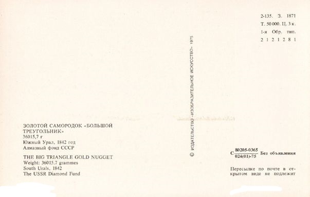 Открытка 1975 г. «Золотой самородок «Большой треугольник». Издательство «Изобразительное искусство»