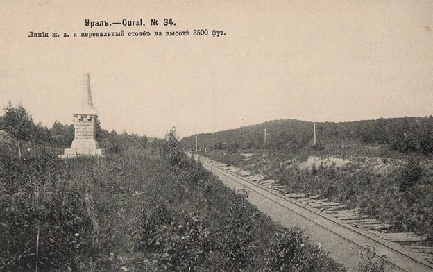 Этот обелиск примечателен тем, что стоит на Транссибе. Установлен вблизи станции Уржумка (Челябинская область) в 1892 году в знак завершения строительства участка Транссибирской железнодорожной магистрали. Пограничный столб сложен из гранитных тесаных «кирпичей», которые использовались в облицовке придорожных сооружений. Автор проекта (предположительно) – инженер и писатель Н.Г. Гарин-Михайловский.