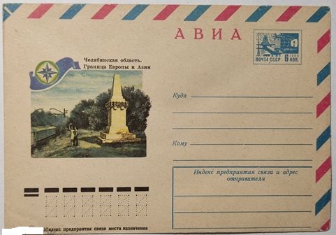 ХМК Минсвязи СССР. 1975 г. «Челябинская обл. Граница Европы и Азии». ППФ. Художник – С.Оксман.